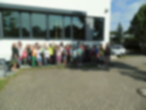 Die Gruppe der Ferienpassteilnehmer versammelt sich im Schulhof der Wilhelm-Lorenz-Realschule.